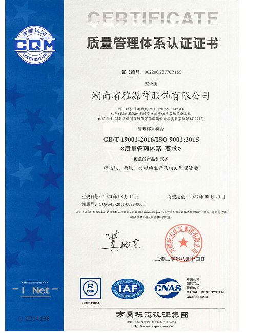 湖南省雅源祥服飾有限公司 © 版權所有 未經許可,禁止拷貝本站圖片或文字資料